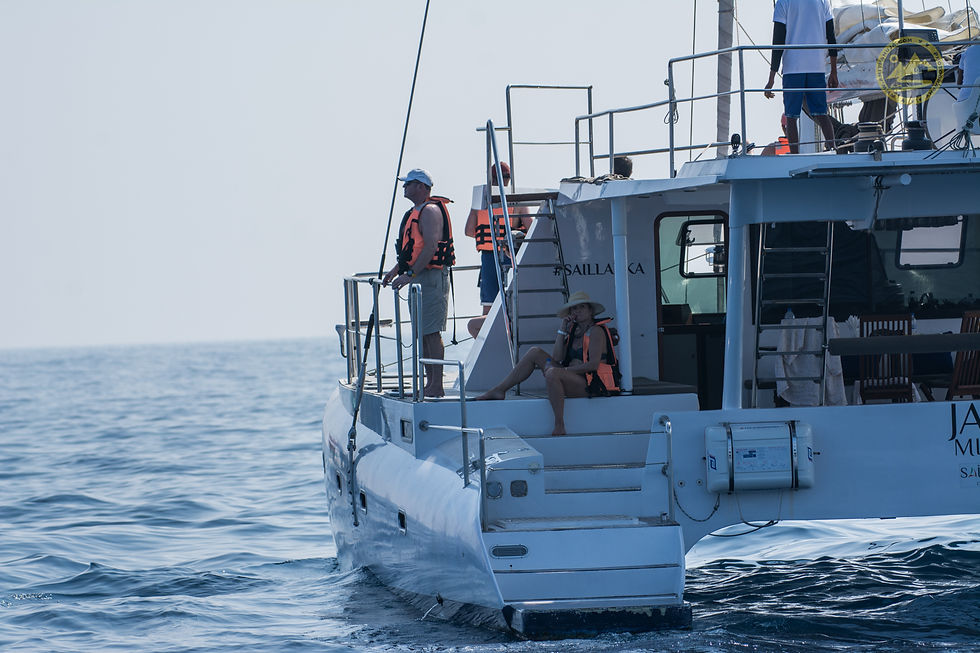 As we sailed into the deep sea people started looking out for the mammals but there was no sign of spotting anything other than a herd of boats looking for the Whales as we did.. It was a long sail into the sea, the temperature started rising and the sun started biting with its hot rays. It was getting difficult to sit in the direct sun so some of us started hiding under the sheds and taking shelter to protect from the burning sun rays until someone screamed W H A L E . . . . W H A L E . . . . W H A L E . . . .
